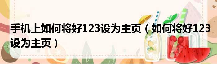 导读 大家好,今天小六子来为大家解答以下的问题,关于手机上如何将好123设为主页,如何将好123设为主页这个很多人还不知道,现在让我们一起来看
