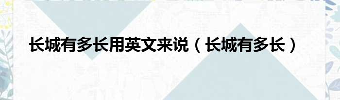 大家好,今天小六子来为大家解答以下的问题,关于长城有多长用英文来说,长城有多长这个很多人还不知道,现在让我们一起来看看吧!