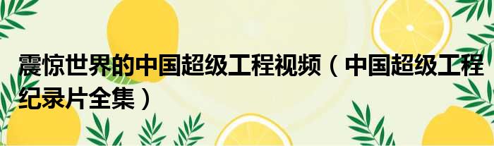 震惊世界的中国超级工程视频(中国超级工程纪录片全集)