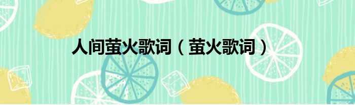 大家好,今天小六子来为大家解答以下的问题,关于人间萤火歌词,萤火歌词这个很多人还不知道,现在让我们一起来看看吧!