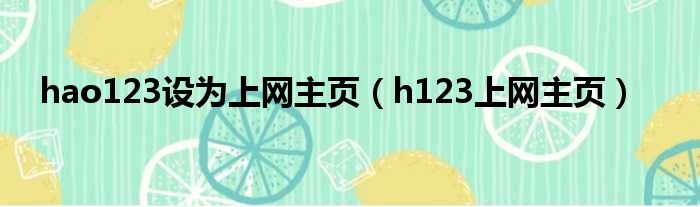 大家好,今天小六子来为大家解答以下的问题,关于hao123设为上网主页,h123上网主页这个很多人还不知道,现在让我们一起来看看吧!