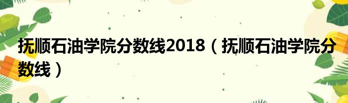 抚顺石油学院分数线2018(抚顺石油学院分数线)