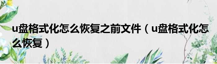 u盘格式化怎么恢复之前文件(u盘格式化怎么恢复)