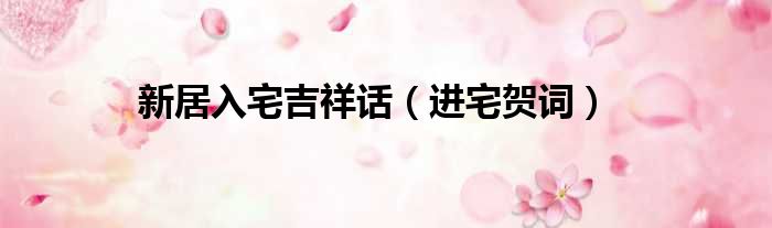 新居入宅吉祥话(进宅贺词)