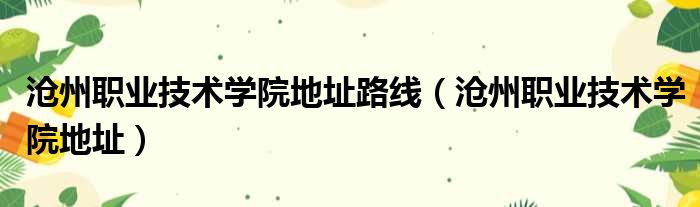 沧州职业技术学院地址路线(沧州职业技术学院地址)