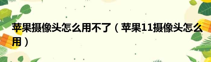 苹果摄像头怎么用不了(苹果11摄像头怎么用)