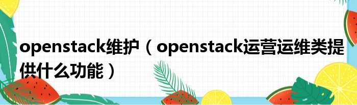 导读 大家好,今天小六子来为大家解答以下的问题,关于openstack维护,openstack运营运维类提供什么功能这个很多人还不知道,现在让我们一起来看