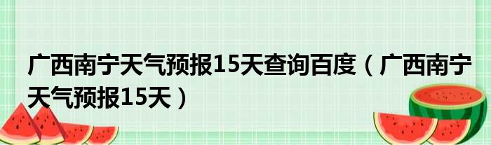 广西南宁天气预报15天查询百度(广西南宁天气预报15天)
