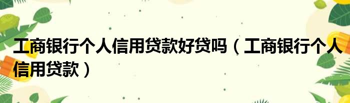 工商银行个人信用贷款好贷吗(工商银行个人信用贷款)
