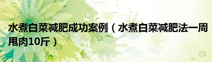 导读 大家好,今天小六子来为大家解答以下的问题,关于水煮白菜减肥成功案例,水煮白菜减肥法一周甩肉10斤这个很多人还不知道,现在让我们一起来