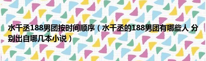 导读 大家好,今天小六子来为大家解答以下的问题,关于水千丞188男团按时间顺序,水千丞的188男团有哪些人 分别出自哪几本小说这个很多人还不知