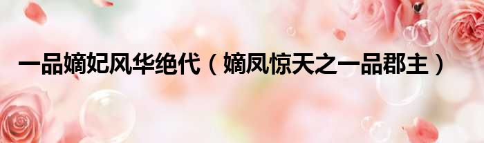 导读 大家好,今天小六子来为大家解答以下的问题,关于一品嫡妃风华绝代,嫡凤惊天之一品郡主这个很多人还不知道,现在让我们一起来看看吧!1、锦