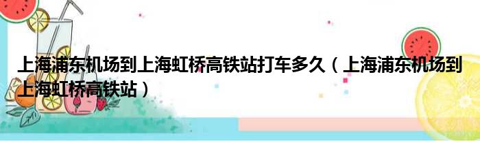 上海浦东机场到上海虹桥高铁站打车多久(上海浦东机场到上海虹桥高铁站)