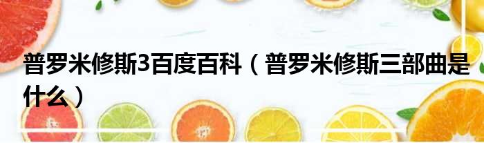 导读 大家好,今天小六子来为大家解答以下的问题,关于普罗米修斯3百度百科,普罗米修斯三部曲是什么这个很多人还不知道,现在让我们一起来看看吧