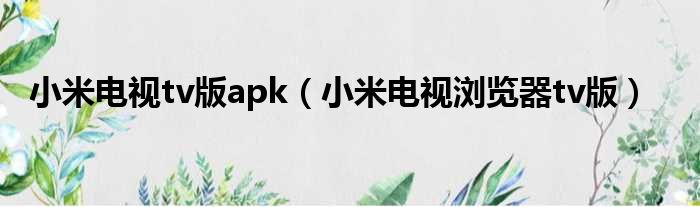 大家好,今天小六子来为大家解答以下的问题,关于小米电视tv版apk,小米电视浏览器tv版这个很多人还不知道,现在让我们一起来看看吧!