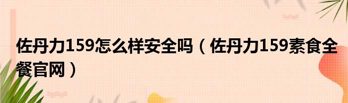 佐丹力159怎么样安全吗(佐丹力159素食全餐官网)