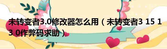 未转变者3.0修改器怎么用(未转变者3 15 13 0作弊码求助)