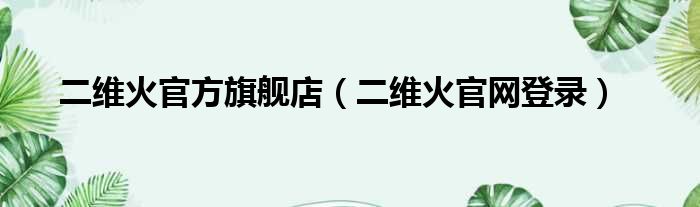 大家好,今天小六子来为大家解答以下的问题,关于二维火官方旗舰店,二维火官网登录这个很多人还不知道,现在让我们一起来看看吧!