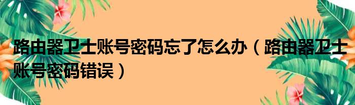 路由器卫士账号密码忘了怎么办(路由器卫士账号密码错误)