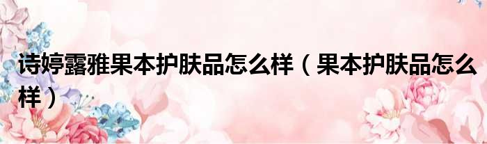 导读 大家好,今天小六子来为大家解答以下的问题,关于诗婷露雅果本护肤品怎么样,果本护肤品怎么样这个很多人还不知道,现在让我们一起来看看吧