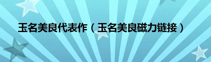 大家好,今天小六子来为大家解答以下的问题,关于玉名美良代表作,玉名美良磁力链接这个很多人还不知道,现在让我们一起来看看吧!