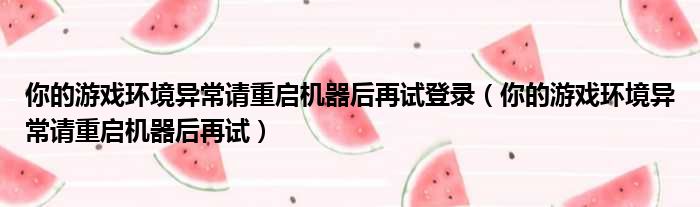 你的游戏环境异常请重启机器后再试登录(你的游戏环境异常请重启机器后再试)