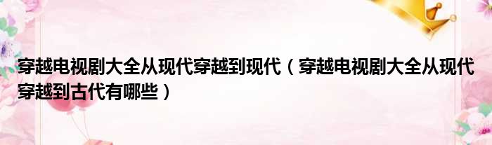 穿越电视剧大全从现代穿越到现代(穿越电视剧大全从现代穿越到古代有哪些)