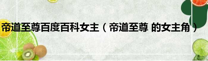 帝道至尊百度百科女主(帝道至尊 的女主角)