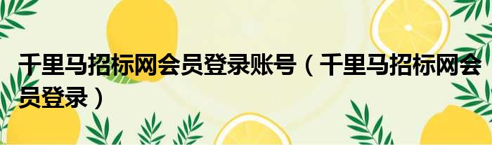 千里马招标网会员登录账号(千里马招标网会员登录)