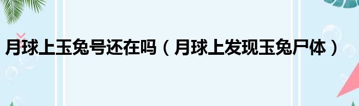 大家好,今天小六子来为大家解答以下的问题,关于月球上玉兔号还在吗,月球上发现玉兔尸体这个很多人还不知道,现在让我们一起来看看吧!