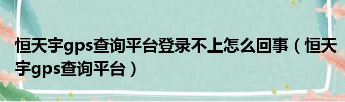 恒天宇gps查询平台登录不上怎么回事(恒天宇gps查询平台)
