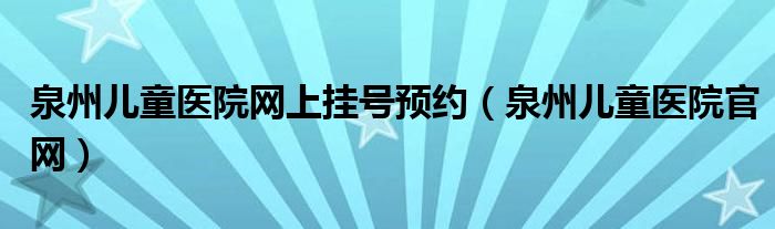 泉州儿童医院网上挂号预约(泉州儿童医院官网)