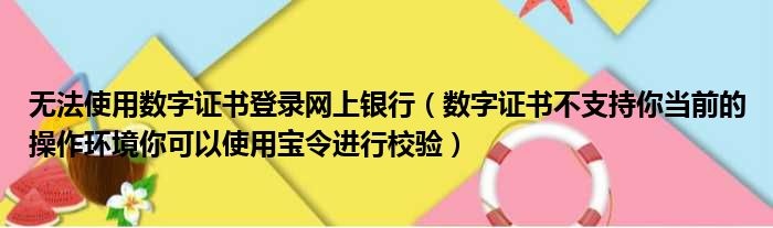 无法使用数字证书登录网上银行(数字证书不支持你当前的操作环境你可以使用宝令进行校验)