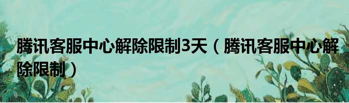 腾讯客服中心解除限制3天(腾讯客服中心解除限制)