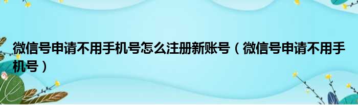 微信号申请不用手机号怎么注册新账号(微信号申请不用手机号)