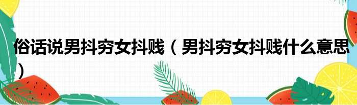俗话说男抖穷女抖贱(男抖穷女抖贱什么意思)