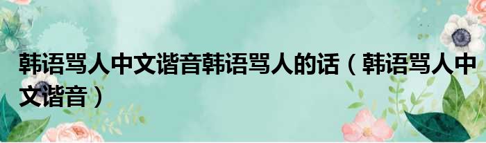 导读 大家好,今天小六子来为大家解答以下的问题,关于韩语骂人中文谐音韩语骂人的话,韩语骂人中文谐音这个很多人还不知道,现在让我们一起来看