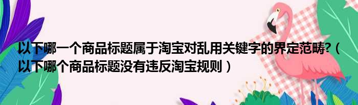 导读 大家好,今天小六子来为大家解答以下的问题,关于以下哪一个商品标题属于淘宝对乱用关键字的界定范畴?,以下哪个商品标题没有违反淘宝规则这...