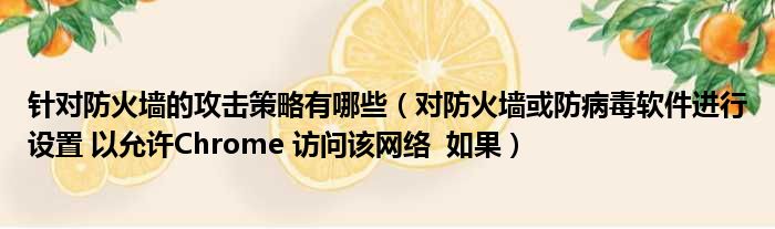 针对防火墙的攻击策略有哪些(对防火墙或防病毒软件进行设置 以允许Chrome 访问该网络 如果)