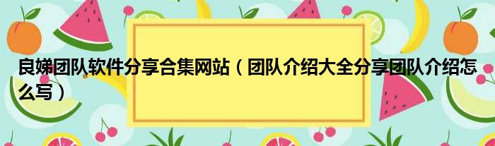 良娣团队软件分享合集网站(团队介绍大全分享团队介绍怎么写)