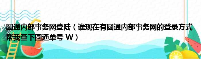 圆通内部事务网登陆(谁现在有圆通内部事务网的登录方式 帮我查下圆通单号 W)