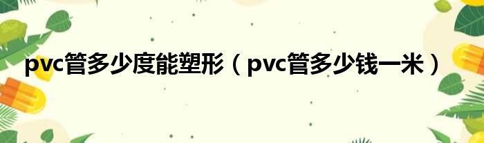 导读 大家好,今天小六子来为大家解答以下的问题,关于pvc管多少度能塑形,pvc管多少钱一米这个很多人还不知道,现在让我们一起来看看吧!1、你要...