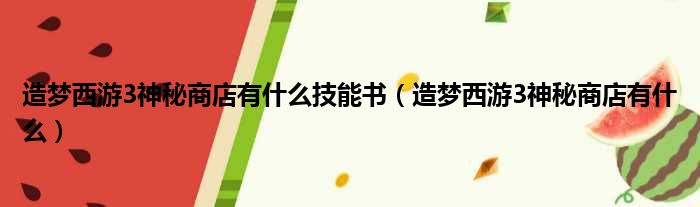造梦西游3神秘商店有什么技能书(造梦西游3神秘商店有什么)