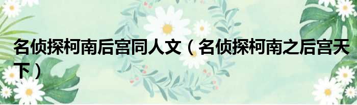 名侦探柯南后宫同人文(名侦探柯南之后宫天下)