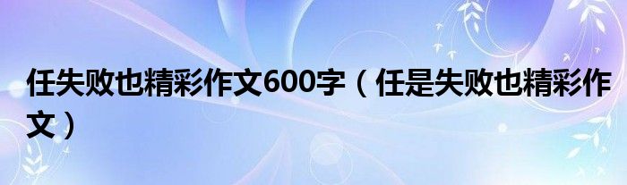大家好,小房来为大家解答以上的问题。任失败也精彩作文600字,任是失败也精彩作文这个很多人还不知道,现在让我们一起来看看吧!
