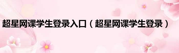 超星网课学生登录入口(超星网课学生登录)