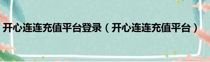开心连连充值平台登录(开心连连充值平台)