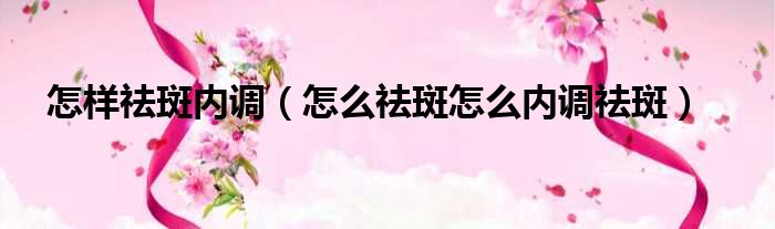 怎样祛斑内调(怎么祛斑怎么内调祛斑)