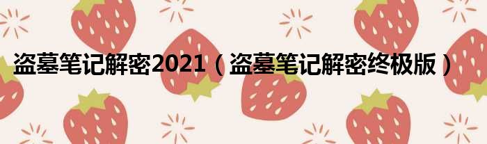 大家好,小房来为大家解答以上的问题。盗墓笔记解密2021,盗墓笔记解密终极版这个很多人还不知道,现在让我们一起来看看吧!