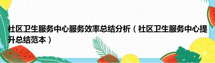 社区卫生服务中心服务效率总结分析(社区卫生服务中心提升总结范本)